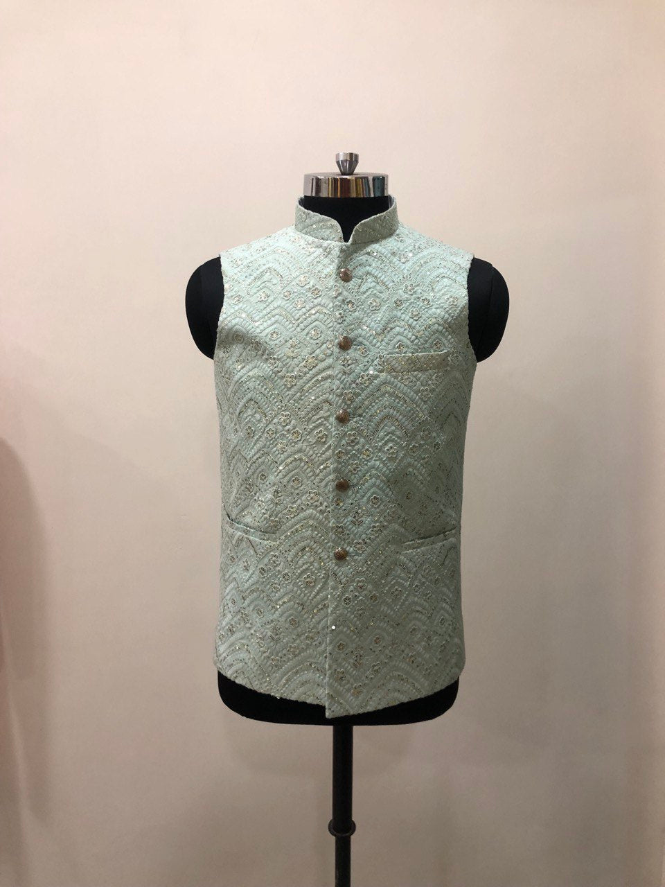 Sherwani Store Bring Your The Classic Zig Zag Chevron Mirror Embroidered Kurta Set.