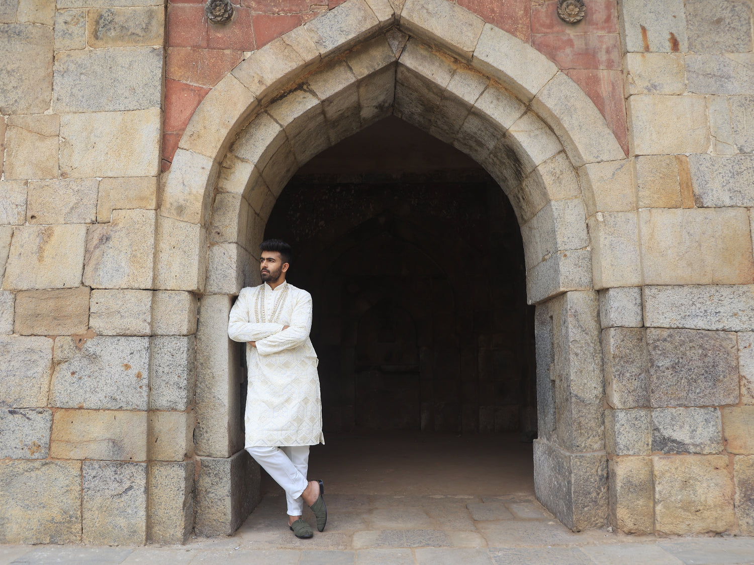Sherwani Store Bring Your The Classic Zig Zag Chevron Mirror Embroidered Kurta Set.