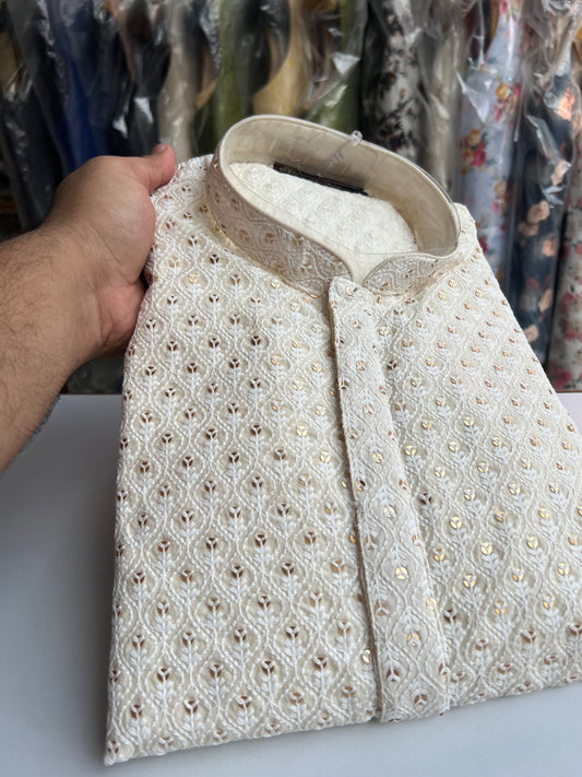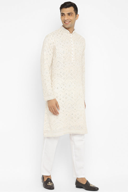 Triple Cream Lucknowi Sequins Kurta Set