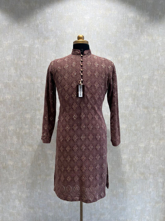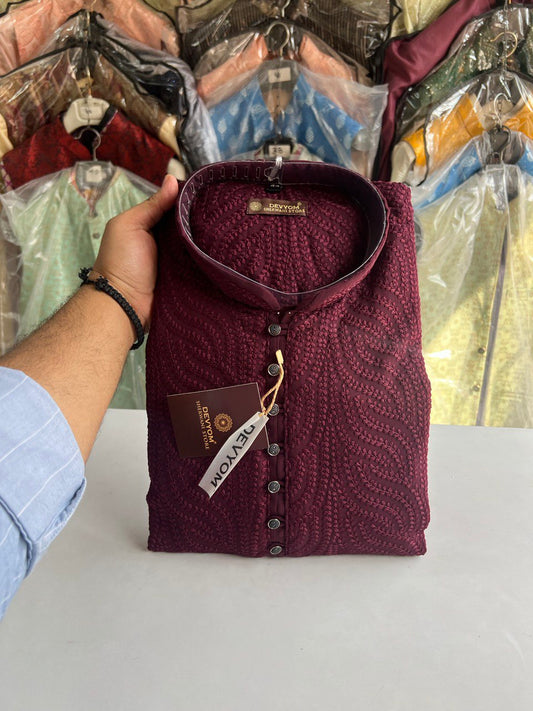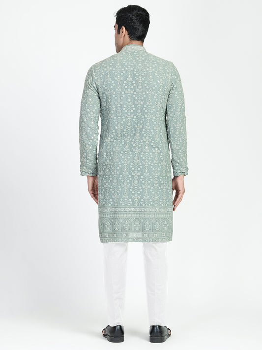 Mens Chikankari Mirror Embroidery Ombre Effect Kurta Set