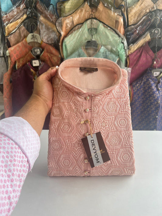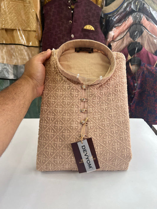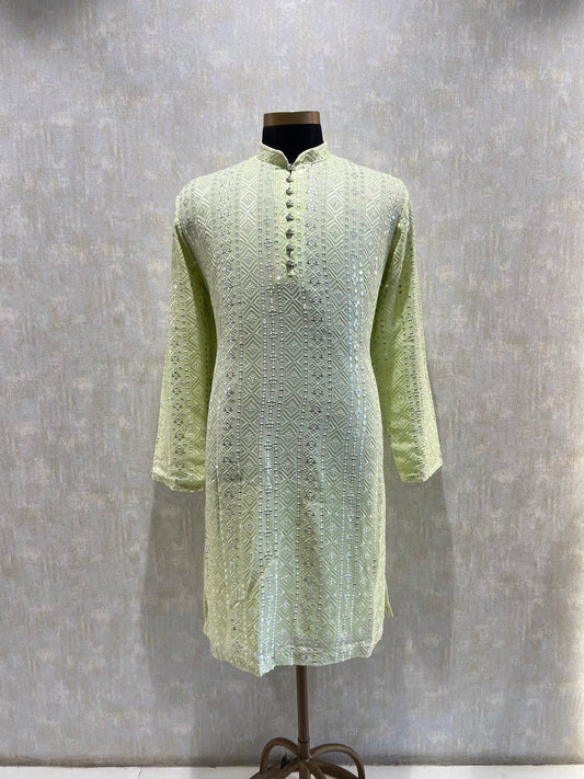Mens Lucknowi Chikankari Sequins Kurta Set