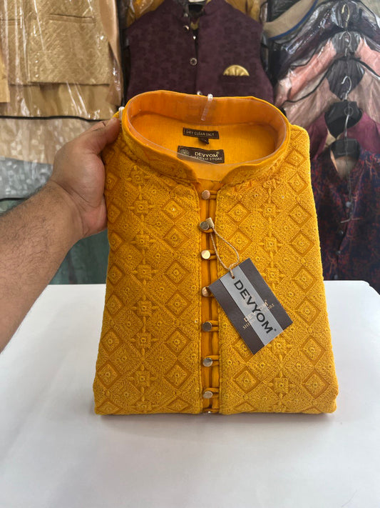 Mens Motif Work Chikankari Sequins Kurta Set