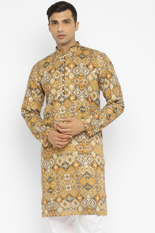 Formal Printed Kurta With Sequin Embroidery