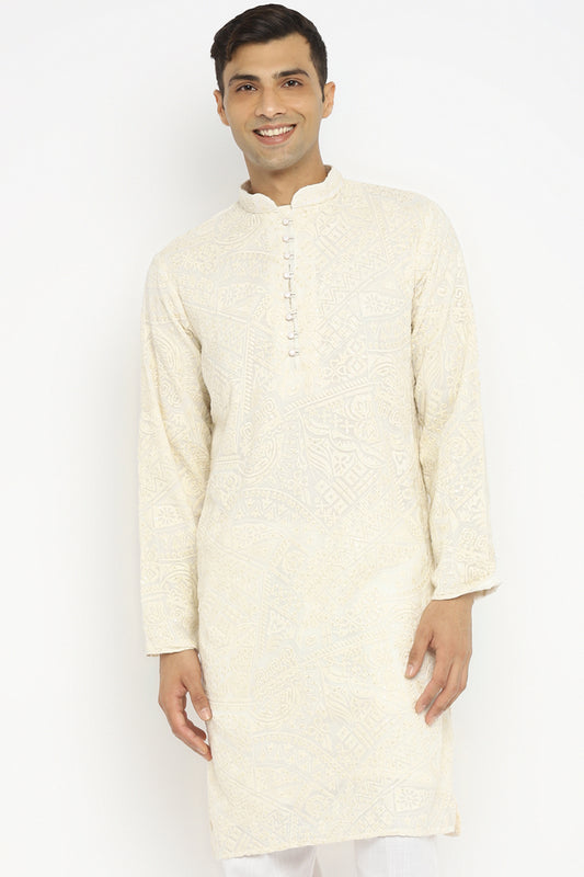 Triple Cream Modern Embroidered Kurta Set