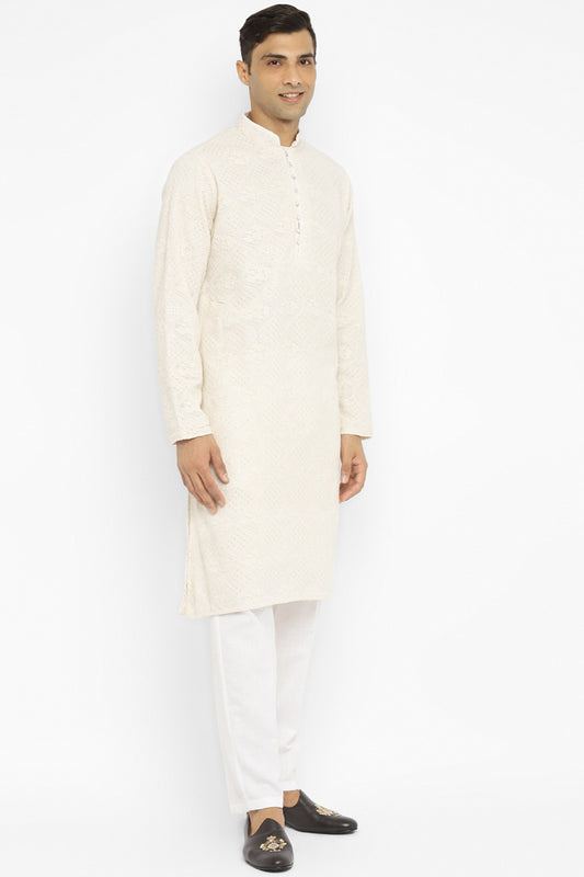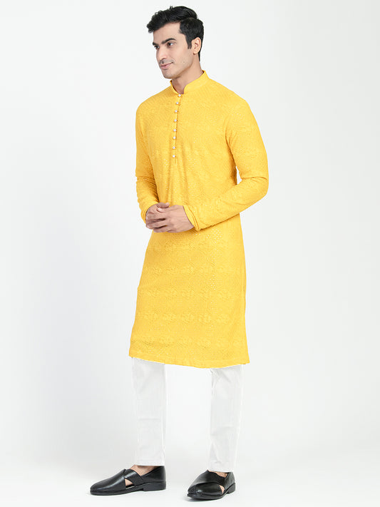 Chikankari Kurta Set With Motif Mirror Embroidery