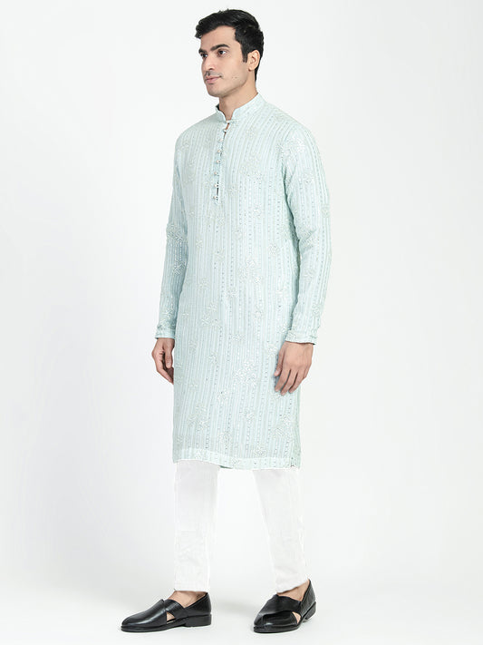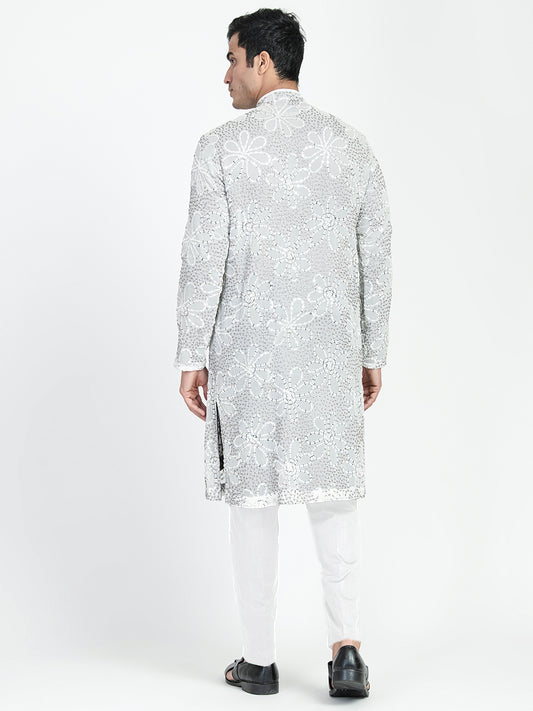 Lucknowi Sequins Worked Chikankari Kurta Set