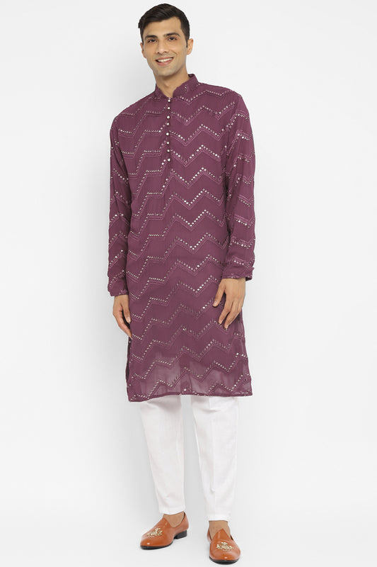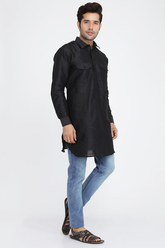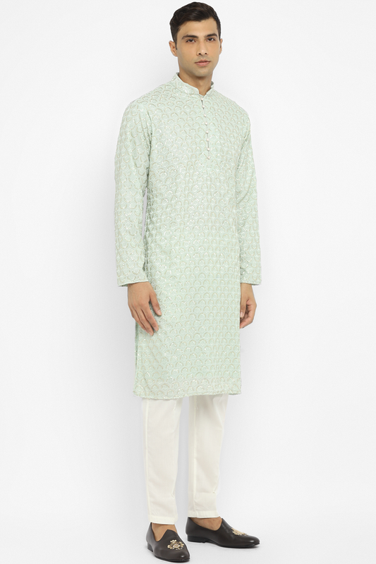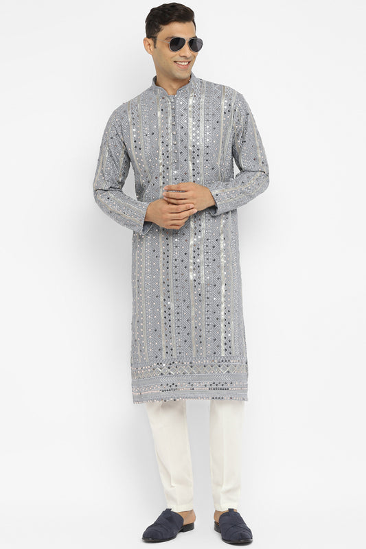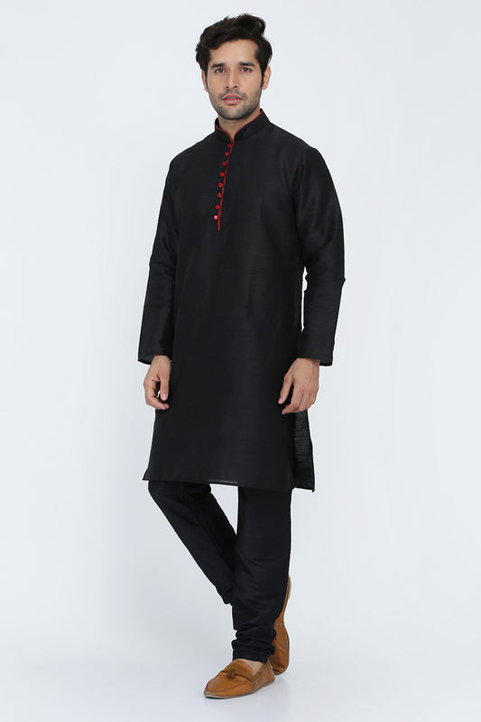 Mens Raw Silk Embroidered Kurta Pyjama Set