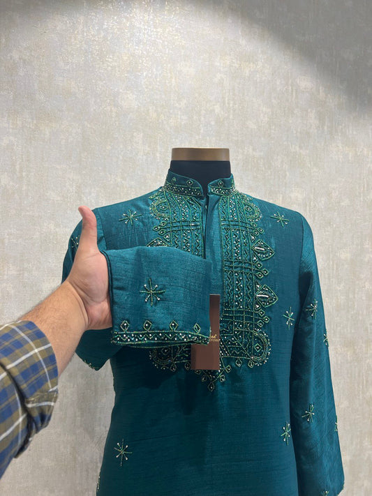 Mens Lucknowi Chikankari Sequins Kurta Set