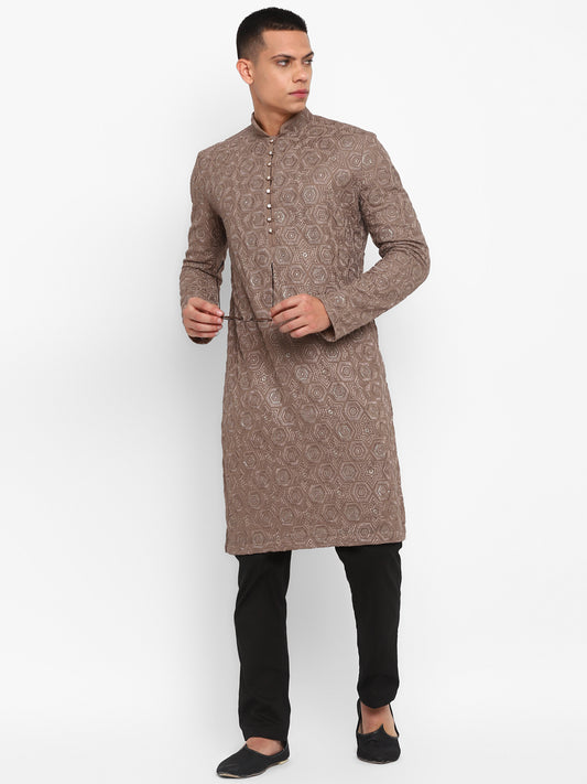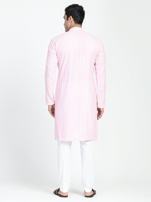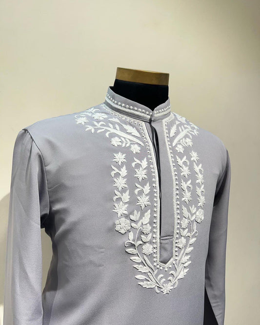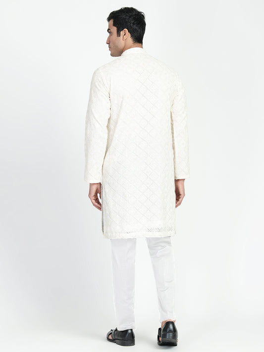 Mens Lucknowi Chikankari Sequins Kurta Set