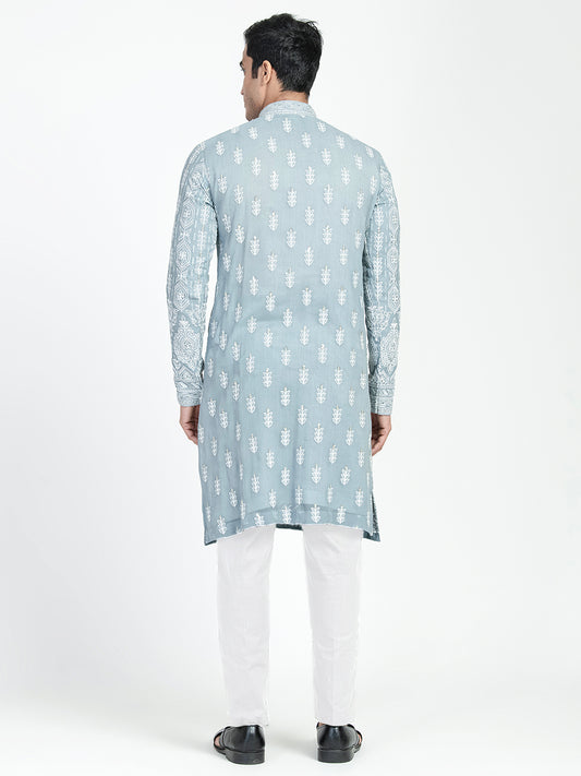 Mens Chikankari Mirror Embroidery Ombre Effect Kurta Set