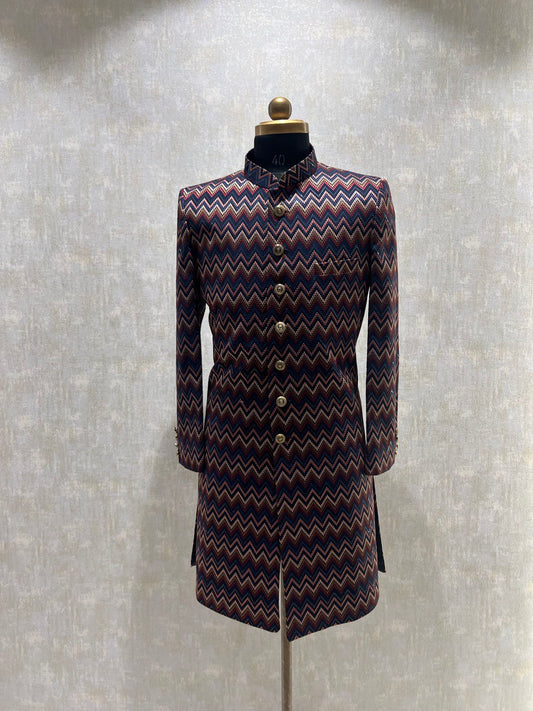 Chevron Designed Multicolored Indowestern Set