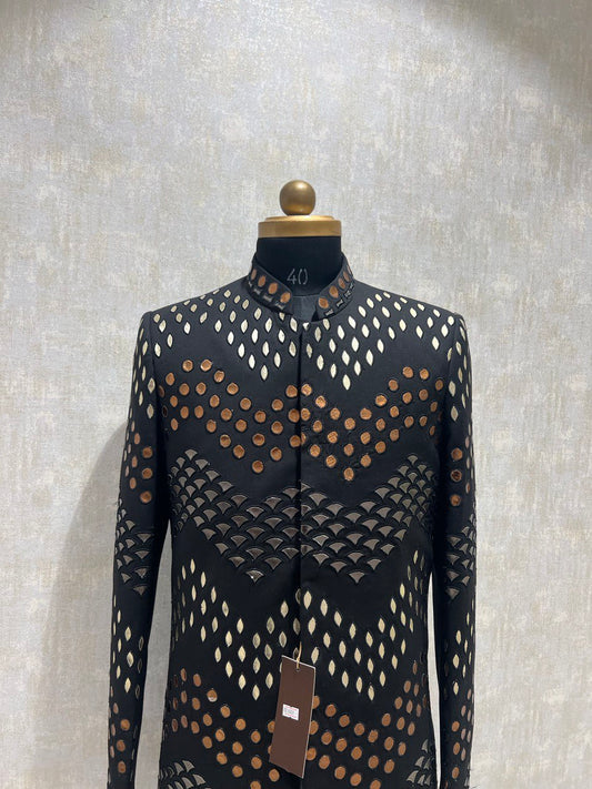 Leather Worked A Line Indowestern Set