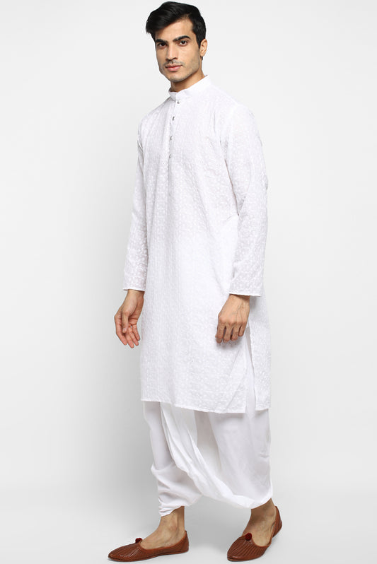Mens Embroidered Cotton Dhoti Kurta Set