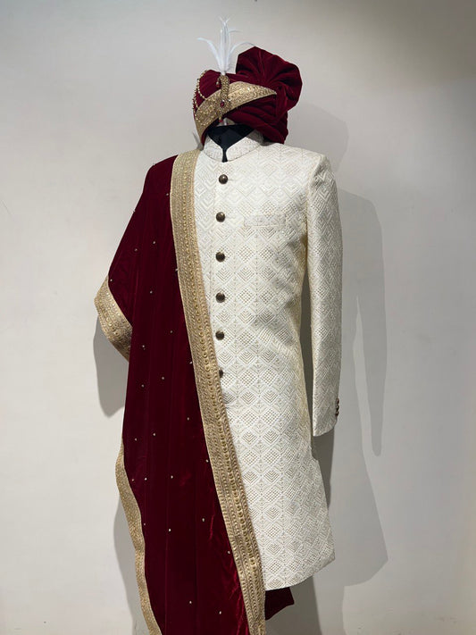 Ivory Thread Sherwani Set With Cut Dana Embroidery